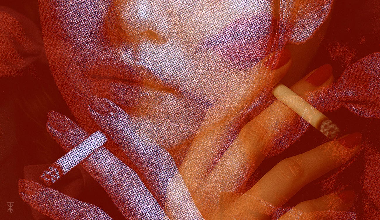taking a slow, glowing drag from a cigarette.